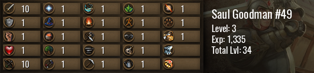 | Icon | Rank | Experience | Level | To Next Level | Until Maxed |