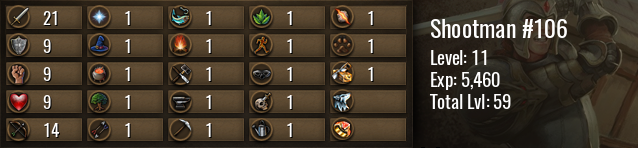 | Icon | Rank | Experience | Level | To Next Level | Until Maxed |