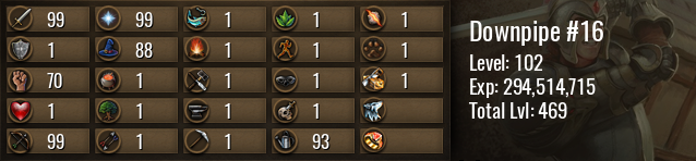 | Icon | Rank | Experience | Level | To Next Level | Until Maxed |