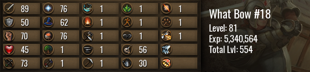 | Icon | Rank | Experience | Level | To Next Level | Until Maxed |