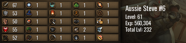 | Icon | Rank | Experience | Level | To Next Level | Until Maxed |