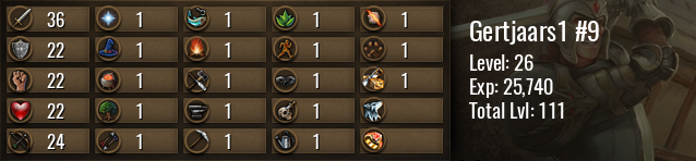 | Icon | Rank | Experience | Level | To Next Level | Until Maxed |