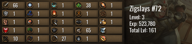| Icon | Rank | Experience | Level | To Next Level | Until Maxed |